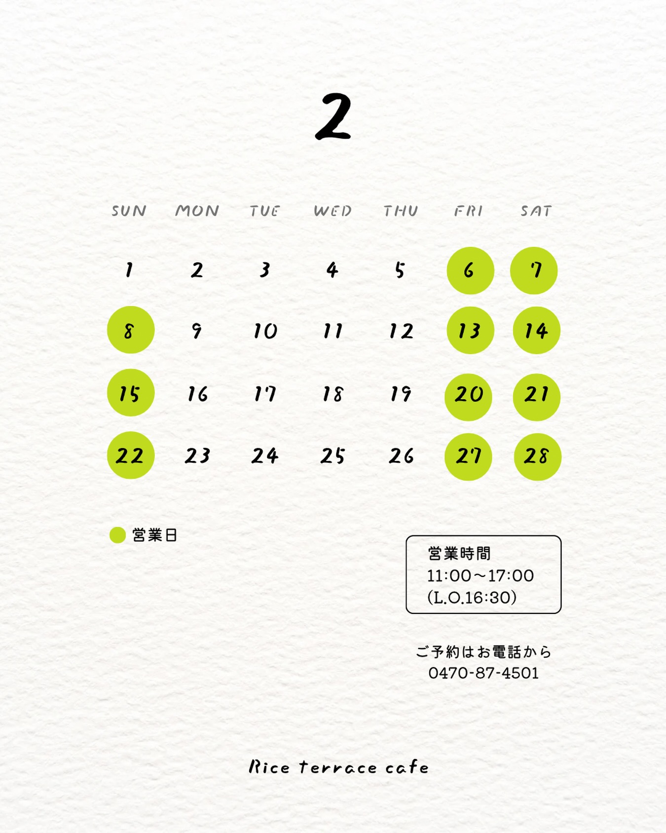 . ※開催日時は、ライステラスカフェ通常営業はありませんので、ご注意下さいませ。