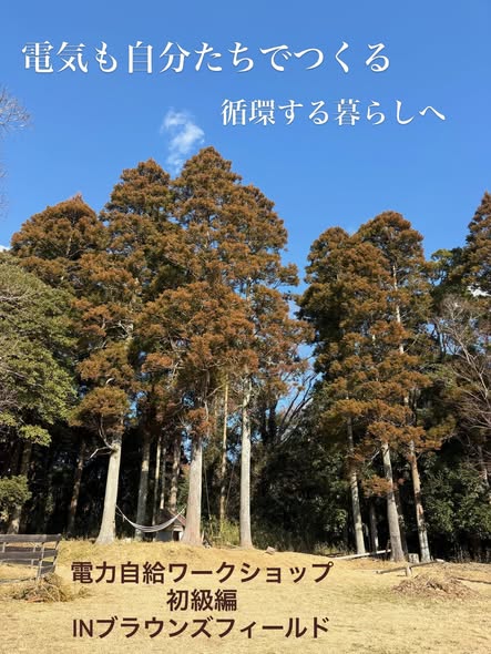 電気も、自分たちでつくる循環する暮らしへ 電力自給ワークショップ 初級編in ブラウンズフィールド 静岡県沼津市の 循環ワークスを拠点に活動する 山本電力による 電… -